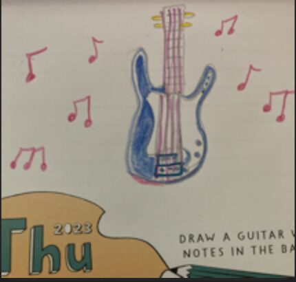 February 16: Draw A Guitar With Musical Notes In The Background